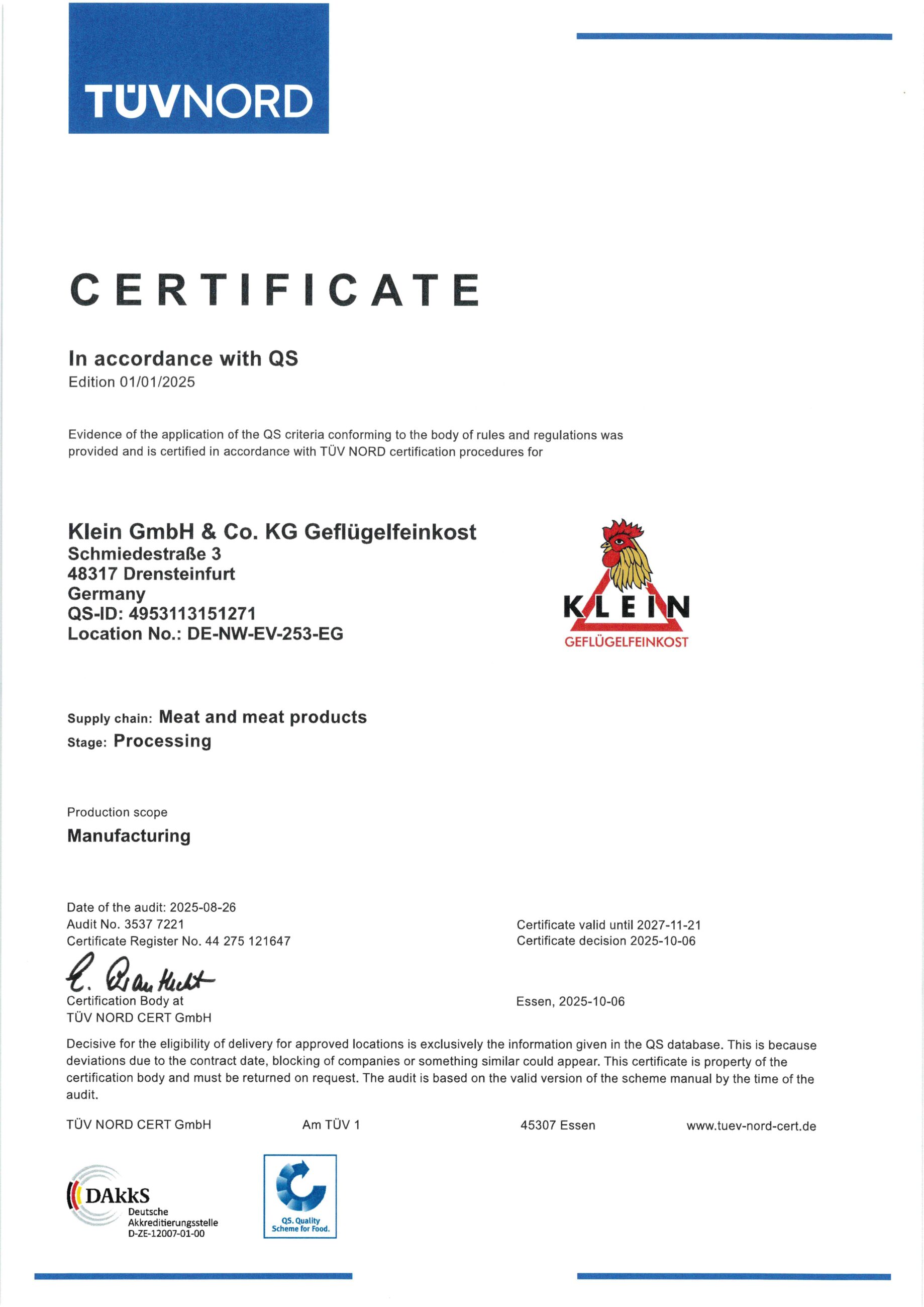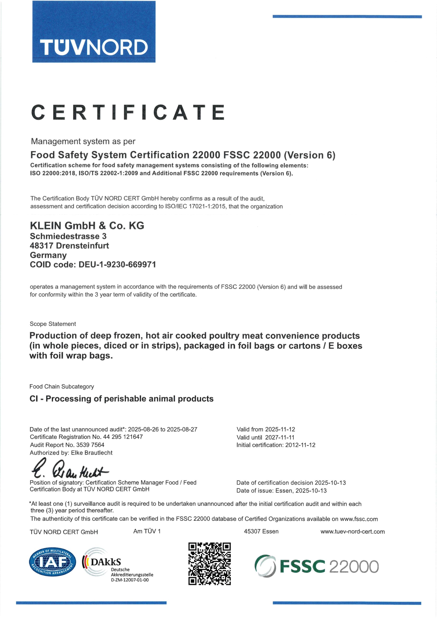 Certified quality with our poultry cnvenience | Klein Geflügelfeinkost